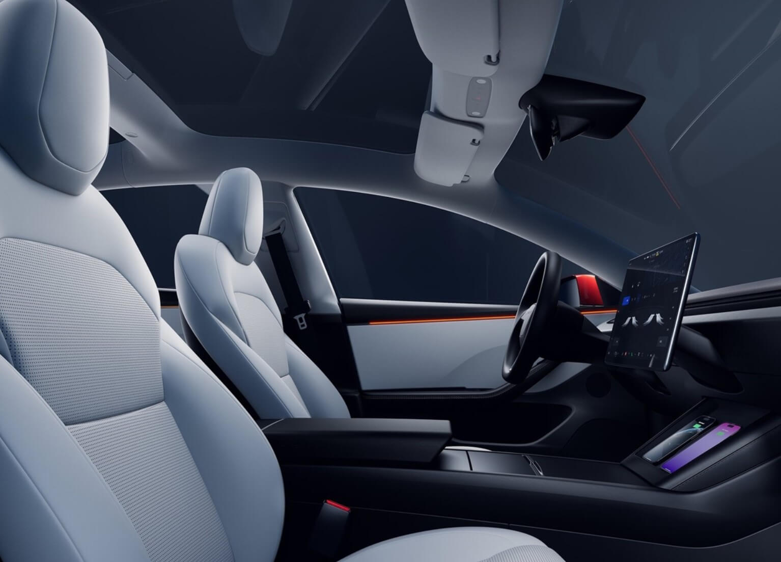A8: 모델3의 실내는 매우 간결하고 현대적인 디자인으로, 15인치 터치스크린을 통한 중앙 집중식 조작 시스템을 갖추고 있습니다.